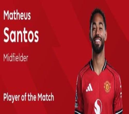 英超第20轮,曼联客场1-1战平利兹联,此役打入一球的曼联前锋马特乌斯-库尼亚当选全场最佳球员。