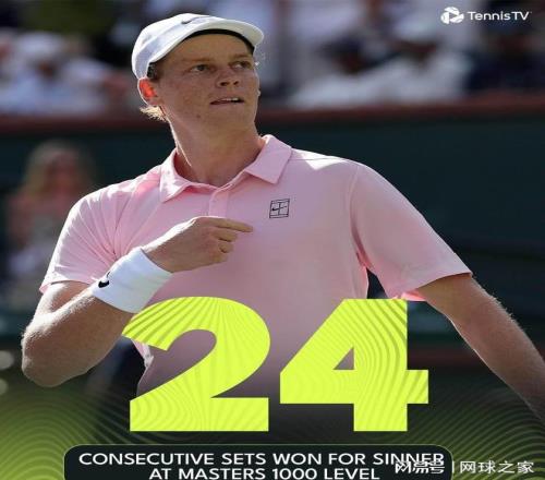 迈阿密大师赛进入第三轮的争夺,新科印第安维尔斯大师赛冠军辛纳不费吹灰之力过关第二轮,至此,他已经追平了德约科维奇的纪录,两人并列成为大师赛历史上连续赢盘次数最多的男单选手。